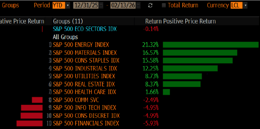 Il fatto che l’indice S&P 500 abbia chiuso una delle peggiori settimane da novembre e che, da inizio anno, le settimane positive siano state pochissime, non racconta la parte più importante della storia, la rotazione tra sotto settori, la distruzione di performance su specifici temi e la crescente evidenza che il prezzo del rischio sta cambiando regime. In questo contesto, la persistenza di rischi al ribasso non deriva tanto da un singolo catalizzatore, quanto dall’allineamento simultaneo di tre forze: un posizionamento ancora troppo “affollato” su asset rischiosi e commodity, una struttura di mercato dominata da flussi meccanici dei fondi quantitativi che tende a vendere nei ribassi e un profilo di gamma dei market maker, che riduce l’elasticità dell’indice e amplifica i movimenti quando si rompono livelli tecnici chiave. E’ dentro questa fragilità “macro-micro” che si inserisce l’idea del team di ricerca di JPM di una contro-rotazione, cioé comprare ciò che il mercato ha massacrato sotto la narrativa “dell’obsolescenza generata dall’Intelligenza Artificiale”, scommettendo sul fatto che il “vendi prima, chiedi dopo” possa essere vicino a un punto di saturazione.